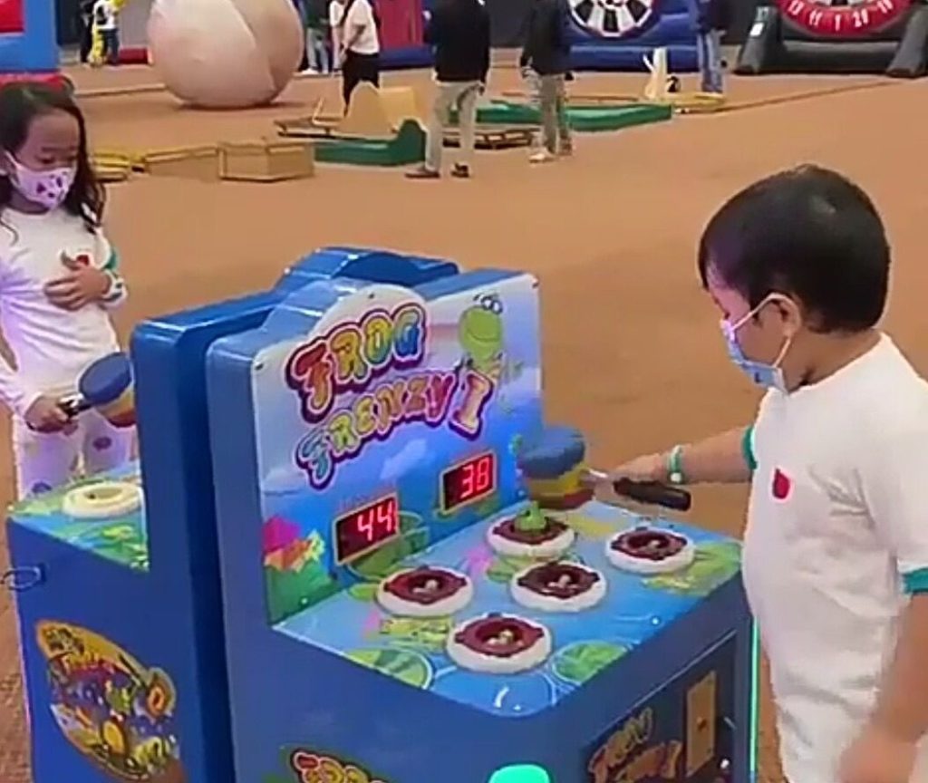 adalah permainan interaktif yang melatih koordinasi fisik. Pemain dapat mencetak poin dengan mengetuk kepala katak, yang cocok untuk anak-anak, orang tua, dan remaja. Kami dapat memberi Anda permainan untuk penggunaan komersial, juga, kami dapat mengaturnya secara gratis untuk dimainkan, dapat diletakkan di ruang permainan keluarga atau area publik (seperti ruang kantor) atau toilet umum universitas.